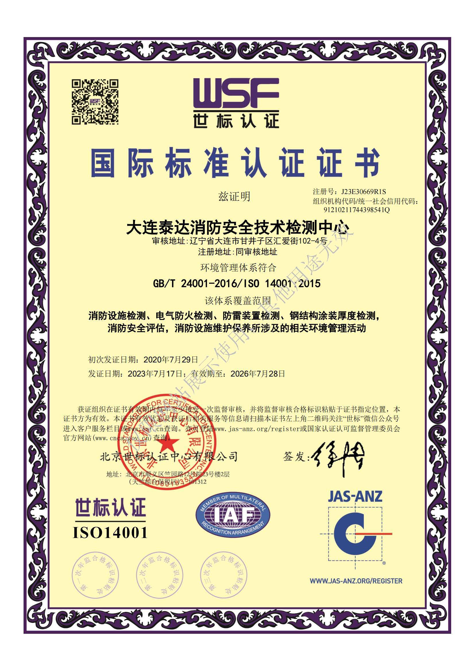 · 是經(jīng)“社會消防技術(shù)服務(wù)信息系統(tǒng)”備案并公示的消防技術(shù)服務(wù)機構(gòu),已取得中國氣象局頒發(fā)的雷電防護裝置檢測資質(zhì)證書、遼寧省質(zhì)量技術(shù)監(jiān)督局審核批準(zhǔn)的檢驗檢測機構(gòu)資質(zhì)認定證書(CMA)及包括消防檢測、電氣檢測、雷電防護裝置檢測、防火涂層厚度檢測等在內(nèi)的200余項檢驗檢測能力,取得大連市應(yīng)急管理局頒發(fā)的安全生產(chǎn)標(biāo)準(zhǔn)化證書,獲得質(zhì)量管理體系、環(huán)境管理體系、職業(yè)健康安全管理體系認證證書,是經(jīng)備案的高新技術(shù)企業(yè),可獨立出具具有證明作用的檢測報告。